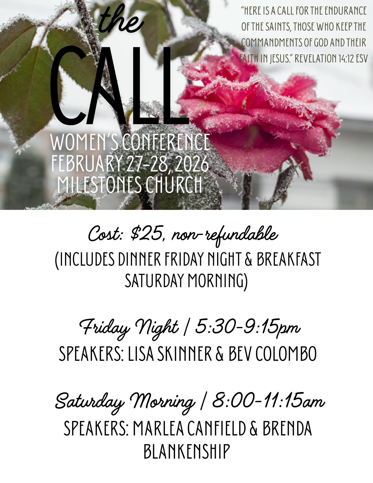 The Call Women’s ConferenceFebruary 27-February 28 Friday Night | 5:30-9:15pm dinner includedSaturday Morning | 8:00-11:15ambreakfast included