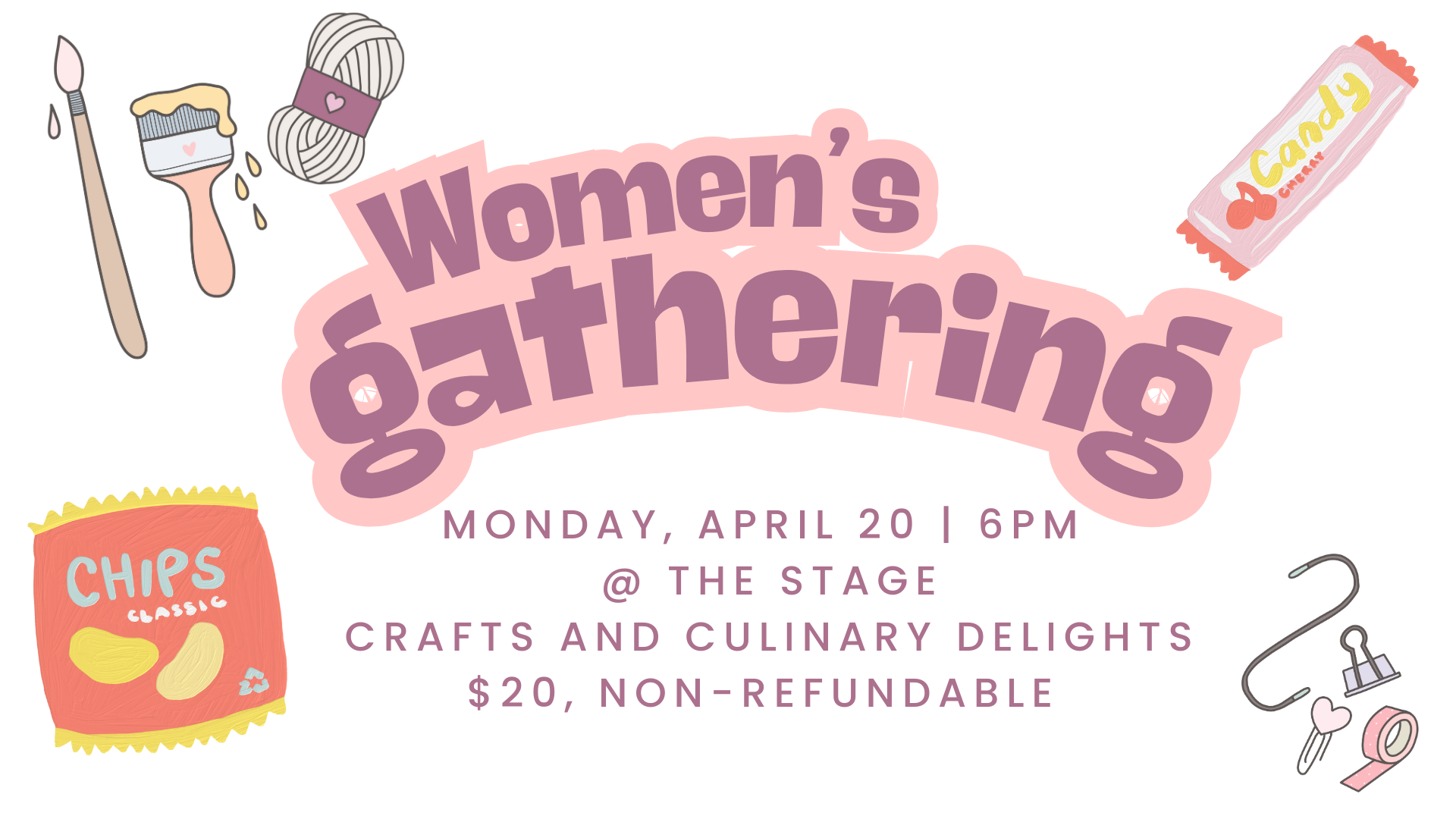Women’s GatheringApril 20 | 6pm @ THE STAGE Crafts and Culinary Delights for WomenCost | $20, non-refundable